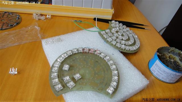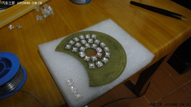 聲明:本帖系轉(zhuǎn)載于汽車之家論壇 作者陸博士,版權(quán)歸作者以及汽車之家所有。 一、喜歡個性的LED尾燈已久 自上次親自改裝斯巴魯小糸雙光透鏡后,一直喜歡的LED尾燈于近期著手準(zhǔn)備開始制作,得到九月的幫助指點,才得以昨天終于全部成功搞完,并于昨晚趕著裝車測試效果 ![]() 圖紙是九月的,直接打印好,經(jīng)過簡單學(xué)習(xí),最終確定用熱轉(zhuǎn)印的方法制作電路板以及印刷電路。廢話不多說了,上圖解釋詳細(xì)過程。 ![]() 打印好電路圖紙,仔細(xì)學(xué)習(xí)九月設(shè)計的電路原理,為3個LED一組串接一個電阻,N組并聯(lián)的方式。 ![]() ![]() 某寶購買好的制作電路板的工具材料 ![]() ![]() ![]() 購買的LED燈珠-F5食人魚 ![]() 激光打印機打印好的電路圖紙到熱轉(zhuǎn)印紙上 ![]() 測試制作了一塊電路板,成功了。 ![]() ![]() ![]() 焊接好電阻先。 ![]() 焊接LED燈珠,測試電路板制作完畢,下面開始正式制作。 將打印好電路的熱轉(zhuǎn)印紙通過熱轉(zhuǎn)印的方法轉(zhuǎn)印到單面覆銅板 ![]() ![]() 轉(zhuǎn)向燈燈板 ![]() 霧燈燈板 ![]() 剎車燈燈板 下面準(zhǔn)備開始腐蝕 ![]() 用到的材料,三氯化鐵 ![]() 倒入開水,三氯化鐵加入后放入熱轉(zhuǎn)印好的覆銅板 ![]() 搖晃加速腐蝕 ![]() 已經(jīng)可以看見腐蝕的進(jìn)度了 ![]() 一會會腐蝕好了,單面覆銅板就變成了這個樣子 ![]() 才好了一塊,繼續(xù)腐蝕另外一塊剎車燈板 ![]() ![]() 又腐蝕好了一塊,哈哈 其他板子腐蝕過程一樣,下面所有板子都腐蝕好后 ![]() ![]() 腐蝕好后的剎車燈板 ![]() 腐蝕好后的霧燈燈板 下面準(zhǔn)備開始切割了,把所有電路板按照自己的形狀切割 ![]() 初步成型 ![]() 剩下部分扔掉 ![]() ![]() ![]() ![]() 微型電摩+切割磨片,都是它的功勞 天已經(jīng)黑了,邊緣微處理圓滑明天接著做 睡覺。。。。。。 天亮了,到公司將8塊電路板邊緣打磨圓滑。 并換上0.9mm鉆頭,將所有板子打孔。 ![]() ![]() 打好空的剎車燈板 ![]() 打好孔的倒車燈板和轉(zhuǎn)向燈燈板 ![]() ![]() ![]() 下面開始用細(xì)砂紙打磨電路板上的油墨,激光打印機打出來的那種油墨,我用的1000號水砂紙打磨的。 就地取材,因為現(xiàn)有砂紙只有這個了。 ![]() 打磨好的倒車燈板。 ![]() 剪好電阻針腳的長度,準(zhǔn)備開始焊接電阻 ![]() LED燈準(zhǔn)備好。 ![]() 電阻焊接完畢了 ![]() 下面開始焊接LED燈珠 ![]() 哈哈,焊接好了5組了。 ![]() 焊完了一塊倒車燈板。 下面通電測試 ![]() 哇,亮了,哈哈,通電15分鐘,測試有沒有個別LED損壞,如有損壞更換掉。 ![]() 不錯,下面開始焊接另外一塊燈板了。 ![]() 霧燈燈板,焊好電阻后就焊了最內(nèi)一圈 一會會,一塊霧燈燈板焊接好了 ![]() 通電測試 ![]() 看起來還可以 ![]() ![]() 比較亮。雖然我用的9V電壓測試的,萬用表測量燈板電流,在安全范圍值內(nèi),這塊算完成了。 繼續(xù)焊接另外一塊霧燈燈板 先用萬用表測試電路板是否腐蝕后存在短路以及斷路現(xiàn)象。然后焊接 ![]() ![]() 剪好正好個數(shù)的電阻。 ![]() 焊好了兩圈電阻 ![]() ![]() 有幾圈電路特別細(xì),不太好焊接。 ![]() 焊好所有的電阻了。 ![]() ![]() ![]() 檢查一下,沒有問題了。下面開始焊接LED燈珠 ![]() ![]() 很快,這塊也焊接好了,下面通電測試 ![]() 最內(nèi)一圈 ![]() 最內(nèi)和最外一圈 ![]() 效果自己還比較滿意的。 ![]() 全亮看看 ![]() ![]() ![]() 還可以。通電測試15分鐘,檢查是否存在性能不良的LED燈珠。 ![]() ![]() 我的燈板發(fā)現(xiàn),一般出問題的燈珠剛通電是正常的,通電1-2分鐘后不正常的燈珠開始閃亮或者熄滅,更換掉后就正常了。 ![]() 兩塊霧燈板來個合影 ![]() 兩塊霧燈板+兩塊倒車燈板合影。 ![]() 下面開始焊接剎車燈板 ![]() 焊完一圈電阻 ![]() ![]() 焊完兩圈電阻 ![]() ![]() 第二塊剎車燈板的電阻也焊接好了,下面焊接轉(zhuǎn)向燈的電阻 ![]() 電阻全部焊接好了,下面數(shù)好正好一塊燈板的LED燈珠放入小盒子里 準(zhǔn)備焊接 ![]() 一個一個焊下來,已經(jīng)焊好了一圈了 ![]() 背面來看看 ![]() 燈珠焊接好了一塊剎車燈板 ![]() 正面看看 ![]() ![]() 焊接好二極管,然后熱縮管套好。 ![]() ![]() 繼續(xù)焊接第二塊剎車燈板的LED燈珠 ![]() 很快焊完一圈了 ![]() 焊完第二塊拉,哈哈 ![]() 兩塊都焊接好了 ![]() 正面看看 ![]() 下面焊接轉(zhuǎn)向燈LED燈珠 ![]() 焊接好了一塊了 ![]() 背面看看 ![]() 焊接第二塊 ![]() 焊接好了兩塊了 ![]() ![]() 全部焊接好了,通電測試通過,來個全觀圖 ![]() 還不錯 ![]() ![]() 燈板終于全部焊接結(jié)束,下面就是考慮如何開燈、如何固定燈板、如何封燈以及插頭的問題了。思考了好多天,也因為那段時間比較忙,一直閑置,于前幾天剛剛想好了所有細(xì)節(jié)的處理辦法,上周5晚上才又開始繼續(xù)開搞。所有細(xì)節(jié)下面慢慢細(xì)說,先上圖 ![]() 哈哈,一步小心已經(jīng)安裝好了一個燈了。 燈板如何固定下面再說。忙著裝燈板呢,沒拍照片,下面才想起來拍。 ![]() 近看看,原來都沒有螺紋的,嘿嘿,找了很久了。。。。你懂的。 ![]() 這個嘛,上圖仔細(xì)看,上面的一個部件可是費了我好大的力氣,費了一個朋友找了好多時間,最后沒辦法,還是找不到,4S的朋友都找不好找的這個東西。。看出來了嗎? ?詳細(xì)解釋:看上圖霧燈燈座上的白色插頭,對,就是它。仔細(xì)一看,這個燈座怎么3根