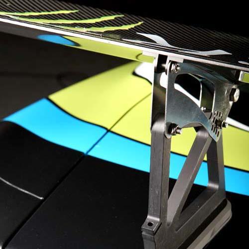 內(nèi)飾部份車主顧及家人共同使用需求,完全保有原廠設(shè)計(jì),僅換上Bride怪獸椅,提高乘坐的舒適與穩(wěn)定性,另外,為了提高方向盤使用順暢性與質(zhì)感,車主還特地?fù)Q上GT- R賽車式樣方向盤,提高山道走行過(guò)程中,方向盤操作使用的穩(wěn)定性,車輛外觀部份,除了先前所提的車體彩繪貼膜,目前僅加裝了Carbon 后下導(dǎo)流、Carbon后下巴定風(fēng)翼及美國(guó)aeromotion Carbon競(jìng)賽可調(diào)尾翼,這款尾翼設(shè)計(jì)相當(dāng)貼心,因?yàn)镚T-R原廠就背上一支不小的尾翼,因此行李箱蓋上就有著不少孔洞存在,但對(duì)于多數(shù)的可調(diào)尾翼設(shè)計(jì)來(lái)說(shuō),若是執(zhí)意要裝,也并非不可,只是必須另行鉆孔安裝,行李箱上原有的左右孔洞,就必須另外想辦法補(bǔ)上,但這組aeromotion可調(diào)尾翼還有底座可加裝,省去處理原有尾翼孔洞的手續(xù),細(xì)心設(shè)計(jì)自然不在話下,但此尾翼設(shè)計(jì)也不只是視覺(jué)系功能,經(jīng)過(guò)支架后端的調(diào)整連桿設(shè)定,可依照車主駕車需求進(jìn)行角度變更,戰(zhàn)斗式樣悄然上身!
