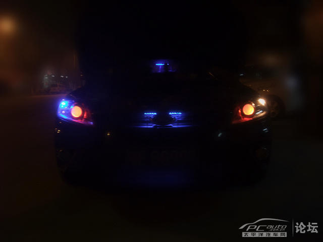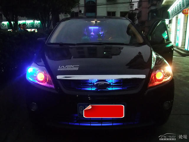 之前因為猶豫而錯過了小小何的雙光透鏡總成,就只有自己改了!自己和師傅兩個新手就這樣折騰了一天一夜終于搞好了!中間很多波折(省略N百字).........直接上效果圖了!調(diào)好光后發(fā)現(xiàn)新買的1.5W藍(lán)色LED燈居然燒了一個就只有換回原車的了,造成兩邊的光都不一樣,惡魔眼看起來就有色差了