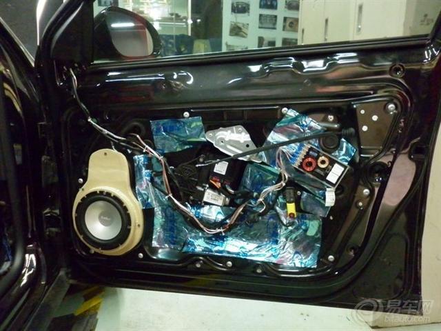 | 邁騰原車用料比較扎實,但是隔音效果差,改裝店家推薦的喇叭是芬朗SP-6.5A套裝喇叭,下面就一起來看一下的改裝過程吧! 拆開內(nèi)飾板后的車門板    門板內(nèi)部貼一層藍金剛  門內(nèi)板再貼一層