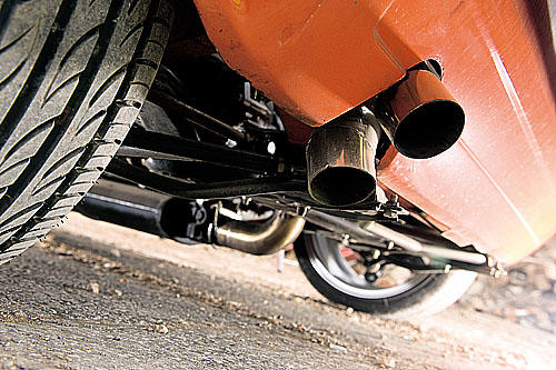 | 雙倍布局 James使用兩套手工特制排氣管來(lái)應(yīng)付兩具發(fā)動(dòng)機(jī)所產(chǎn)生的大量高辛烷值廢氣。 |