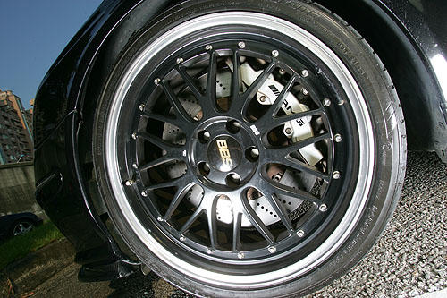 | 沿用原廠配置的八活塞卡鉗特別換上加大剎車總泵使得以往制動(dòng)力不足的情形能大幅改善,而19寸BBS RSGT輪轂除了提供更為肅殺的外觀氣勢外,更寬的輪胎面積則提供最佳抓地力。 |
