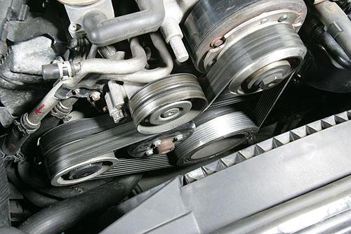 由于W220 S350本身因?yàn)檐囍馗叩囊蛩?,即使V6發(fā)動(dòng)機(jī)3.7升的排氣量加速力道上仍是稍嫌不足,為了有更佳的性能表現(xiàn)車主特別將自然進(jìn)氣發(fā)動(dòng)機(jī)進(jìn)行強(qiáng)化,雖然馬力輸出效率仍不及機(jī)械增壓發(fā)動(dòng)機(jī),不過實(shí)際改裝后的反應(yīng)卻令筆者相當(dāng)驚奇與贊賞。為了使馬力與油門反應(yīng)有提升效果,因此改裝者針對(duì)普利盤特別換上配重后的加大品使得油門反應(yīng)更順暢。