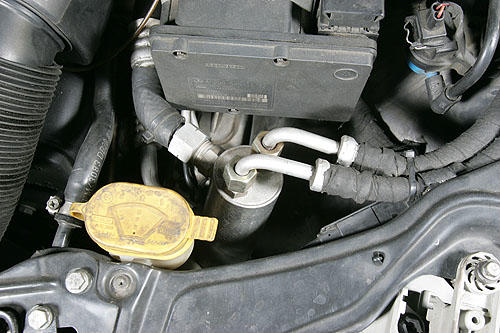 在提高機(jī)械增壓值后空氣壓縮所產(chǎn)生的高溫仍會(huì)影響進(jìn)氣溫度,為了有效降低溫度達(dá)到最佳燃燒混合比還特別加裝前置Cooler,而刻意加裝的空調(diào)冷煤管汽油冷卻器在啟動(dòng)冷氣后還能有效降低汽油溫度,進(jìn)而有效利用霧化汽油來降低發(fā)動(dòng)機(jī)過熱而產(chǎn)生的爆震問題,加上水噴射在機(jī)械增壓值達(dá)到一定程度時(shí)能自動(dòng)開啟灑水裝置以冷卻水箱溫度,對(duì)于重裝版的C200K更顯重要。
