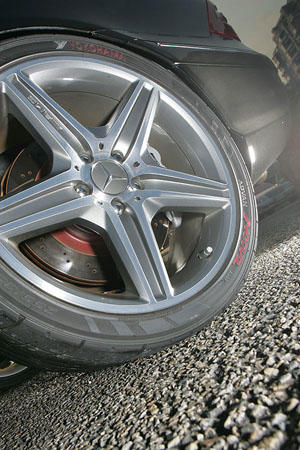 除了動(dòng)力方面做了大幅度更動(dòng)之外,對(duì)于底盤等相關(guān)周邊機(jī)件改裝者同樣全面進(jìn)行升級(jí)以達(dá)成最佳操控性,除了懸掛系統(tǒng)換上Bilstein PSS9以達(dá)到硬派的回饋路感,防傾桿也改由H&R強(qiáng)化物品所取代,胎圈更是升級(jí)為C63 AMG專用18寸鋁圈與性能胎,至于剎車系統(tǒng)為了因應(yīng)大幅強(qiáng)化后的C200K動(dòng)力,一般原廠剎車卡鉗早已不堪負(fù)荷的情況下,卡鉗已升級(jí)為前六后四配上加大碟片以提供精準(zhǔn)的制動(dòng)效果。