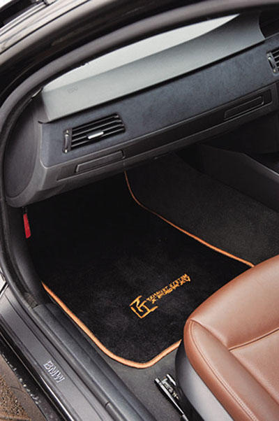 | 觸感與質(zhì)感均高的Alcantara真皮儀表座還是試作品,期待能早點正式上市。刺繡Arqray廠徽的地毯也很炫、令人注目。 |