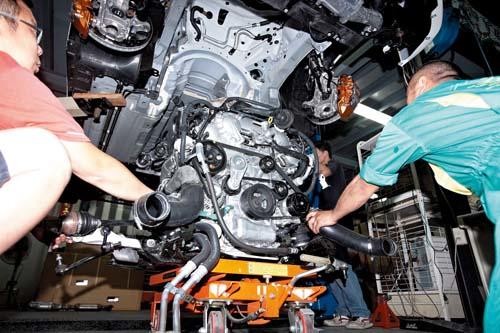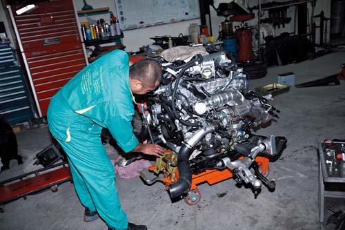 此外,控制增壓值大小最直接的Actuator部分與影響排氣壓力最明顯的Front Pipe,Mine's也有推出相對應(yīng)的改裝套件,為維持改裝完整度與品質(zhì),換裝時須將整具發(fā)動機(jī)落下才能進(jìn)行這兩項(xiàng)套件的施工,好??在R35 GT-R發(fā)動機(jī)本體并不大,加上變速箱位于車輛后軸上,因此施工時只需將線組、管路與傳動軸拆下即可將發(fā)動機(jī)落下,不會對車輛造成任何傷害,難度也比想像中好上許多,只花一天時間即可完成,如此一來車上的兩組觸媒皆已拆除,對于高轉(zhuǎn)排壓降低有絕對正面的幫助。