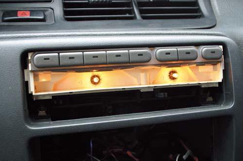 | 這就是面板拆除后的樣子,上面有兩顆1.2W的儀表燈泡