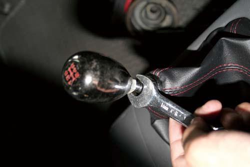 拆除的方式是透過開口扳手直接轉動下方螺絲即可,記得握住排檔頭才不會跟著旋轉 |