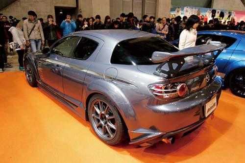 這點在TAS中同樣可明顯感受出來,整個會場展出的RX-8數(shù)量相當少,且就只有這兩部較具看頭,改裝項目方面則著重在空力套件與底盤,動力則保持原廠狀態(tài),不過改裝的RX-8果然還是比較兇。值得一提,RX-8近幾年來也開始流行移植RX-7上的13B-REW渦輪增壓發(fā)動機,對于動力提升效果相當明顯,且經(jīng)賽道實際測試后發(fā)現(xiàn)整體的穩(wěn)定性相當優(yōu)異,或許會成為日后改裝的潮流。
