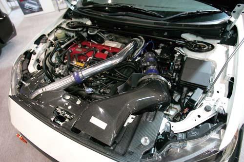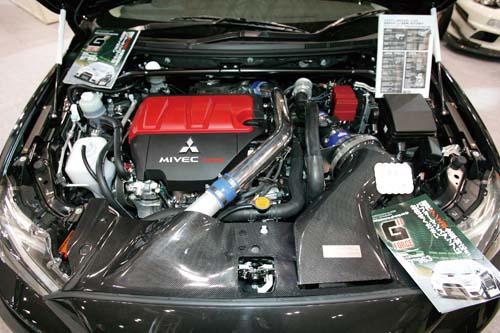 | 這部G-Force改裝出來的EVO X,在更換ECU程式、加裝HKS EVC 5調(diào)高增壓值與更換鋁合金進(jìn)氣管路后,便可獲得60~80hp的馬力增幅,充分說明這具4B11的改裝潛力,事實(shí)上這間改裝店針對(duì)EVO X還推出一系列的改裝套餐,除上述介紹的基礎(chǔ)改裝外,中度改裝套件則加強(qiáng)Front Pipe與鈦合金排氣管的安裝,可獲得100hp馬力的效果,至于重度改裝便須再換裝Tomei高角度凸輪軸、Blitz進(jìn)氣套件、HKS加大中冷器等套件,如此便可在不變動(dòng)渦輪的情況下,輸出大約440匹的最大馬力 |