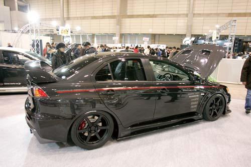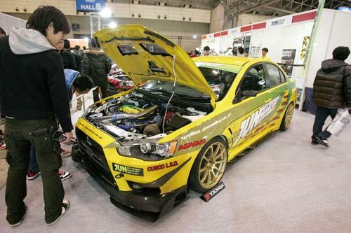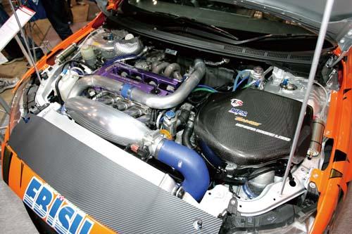 | 這部EVO X是由前JUN海外部長(zhǎng)-小山進(jìn)所經(jīng)營(yíng)Koyama Racing Labo改裝廠所改裝出來,動(dòng)力改造部分,先將4B11的排氣量從1998c.c.擴(kuò)大到2280c.c.,再透過Blitz試作中的渦輪增壓套件,將最大馬力提高到600hp的水準(zhǔn),避震器則為Zeal Super Function Type-E,剎車系統(tǒng)為Endless Racing Mono 6競(jìng)技型多活塞卡鉗系統(tǒng) |