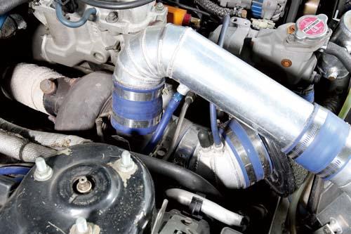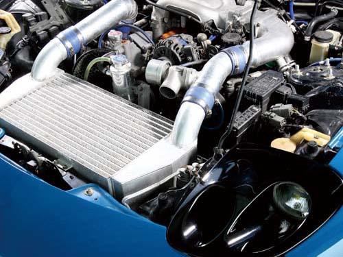 東極手工制渦輪管路將進(jìn)氣冷卻器與水箱設(shè)計成V型配置,這在日本已經(jīng)是相當(dāng)普遍的改裝方式。 |
