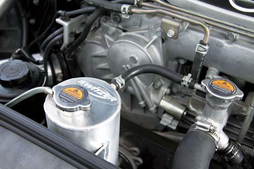 | 除了利用加大水箱以有效控制發(fā)動(dòng)機(jī)溫度,Switzer同樣改以低溫水龜并配合水道管路縮短增加冷卻系統(tǒng)的運(yùn)作效能。 |