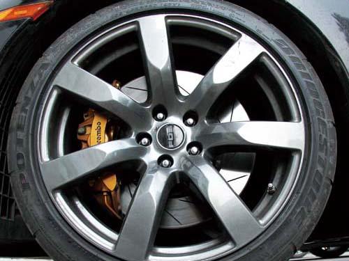 | 雖然原廠Brembo剎車堪稱是目前相當(dāng)具水準(zhǔn)的原廠物品,只不過對(duì)應(yīng)R35高達(dá)1.7噸以上的重量負(fù)擔(dān),似乎升級(jí)剎車已是不可避免的改裝項(xiàng)目之一。 |