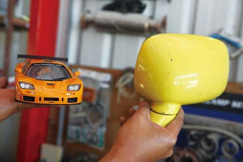 | 經(jīng)過(guò)了不斷比對(duì)后終于找到跟McLaren F1 LM一模一樣的后照鏡,這可是從VW Corrado上拆下來(lái)的原廠物品。 |