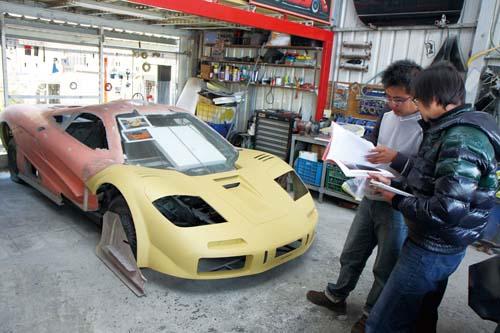 接著就是用批土進(jìn)行細(xì)部的塑形,本來(lái)這個(gè)步驟是應(yīng)該使用鈑金用的補(bǔ)土,但是成本太高所以才使用建材用的批土來(lái)代替,細(xì)部完成之后就是在外表披覆厚達(dá)六層的玻璃纖維材質(zhì),接著就是在這層玻璃纖維的外殼上不斷的修整成現(xiàn)在大家看到的這個(gè)樣子,其實(shí)打造的過(guò)程并不是三言?xún)烧Z(yǔ)及可帶過(guò),還有許許多多的細(xì)節(jié)必須注意,有興趣的讀者可以到阿信的部落格看看,里面有詳盡的施工紀(jì)錄(tw.myblog.yahoo.com/beidou-chising)。至于動(dòng)力方面,McLaren F1 LM配上原本的2.5L的發(fā)動(dòng)機(jī)似乎有損這輛車(chē)的形象,因此阿信找來(lái)一具NSX的發(fā)動(dòng)機(jī)與變速箱準(zhǔn)備使用,但目前施工進(jìn)度還沒(méi)到達(dá)那里,所以也只能讓自己去讀者想像到時(shí)候完工的狀態(tài)吧。