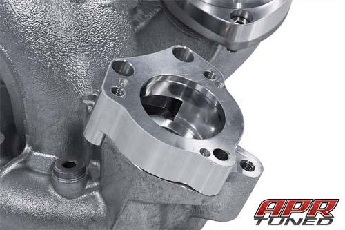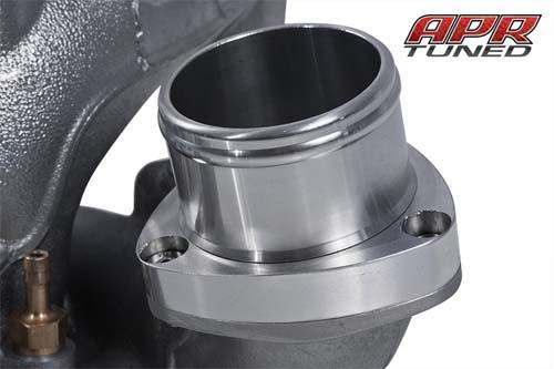 原廠K04渦輪設(shè)計在出風(fēng)口多了一個渦輪消音器,用意在于減少原廠渦輪所制造出的聲音傳入車內(nèi),也同時限制了增壓時的傳送流量,而APR將這消音器移除,除了還原K04渦輪原始的運(yùn)轉(zhuǎn)聲浪,更可讓空氣流量更順暢,而APR同時制作了一顆簡單又干凈的CNC接管,直接鎖在增壓蓋上取代原廠的消音器,并安裝矽膠泄壓管路和O型環(huán),提供了最好的防滑性來確保其防漏性。