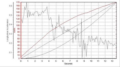 | 0~400m加速測試:13.64秒0~100km/h加速:5.48秒400m末速:171.0km/h |