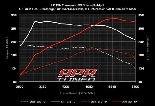APR專用的K04 Turbo kit分為五代Golf GTI TFSI與六代Golf GTI TSI兩種,五代套件包含APR特定K04渦輪、APR燃油高壓泵浦、APR噴油嘴、渦輪進(jìn)氣管、空氣循環(huán)管、渦輪墊片、泄壓閥座、泄壓閥延長線組、APR專用電腦程式等,至于六代Golf GTI的TSI發(fā)動機(jī)系統(tǒng)較五??代更為進(jìn)步,因此像是噴油嘴等一些周邊都不需更換,在售價上更優(yōu)惠不少,且由于發(fā)動機(jī)設(shè)定的不同,改裝后五代GTI可擁有322hp最大馬力與44kgm的扭力輸出,而六代GTI更可達(dá)到334hp馬力的水準(zhǔn),動力提升幅度相當(dāng)高。