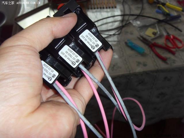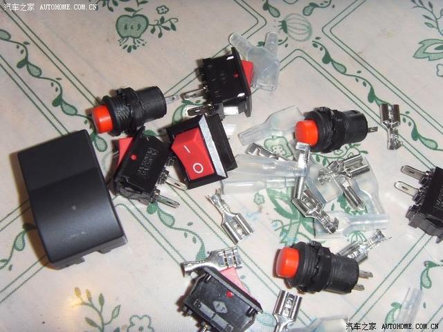 | 很久沒有上作業(yè)了,前段時間裝的爆閃燈,改裝店圖方便,沒有好好研究一下走線,由于有個獨(dú)立開關(guān)要接到駕駛室,他們就給我從側(cè)門邊上穿線過去了,露出來一條難看的控制線夾在門縫里,心里總是有個疙瘩,突然想到車?yán)锊皇怯腥齻€空閑開關(guān)么,何不利用起來呢?線也要重新走一下,從發(fā)動機(jī)艙穿到駕駛艙最好,這樣就看不到線外露了。  說干就干,查閱了小馬的維修手冊,發(fā)現(xiàn)要拆這三個開關(guān)還不是件容易事啊,要先拆門邊裝飾板,再拆側(cè)面板,再拆發(fā)動機(jī)蓋開啟開關(guān),然后拆下駕駛側(cè)下面板,最后才能把這三個寶貝取下來...... 好復(fù)雜,上網(wǎng)查吧,沒想到居然沒有這方面的作業(yè)和教程,有點(diǎn)想打退堂鼓了......前兩天一朋友搞自己的銳志就把零件搞壞了,萬惡的JS兩個小零件要了他200塊,后悔不已啊!回到家里輾轉(zhuǎn)反側(cè)還是不甘心,又研究了好幾遍維修手冊,重新燃起了斗志,好歹咱也是理工科畢業(yè)的啊,這點(diǎn)小活都怕了算什么啊!再說小馬論壇上這方面的帖子都沒有,太不像話了,哥就當(dāng)一把小白鼠吧,給大家探探路!準(zhǔn)備好各種需要用到的工具,操家伙開干!首先要先拆下這個發(fā)動機(jī)蓋開啟開關(guān),這個我費(fèi)了好半天勁,維修手冊上畫的圖有問題,不知從何下手!最后才研究出來,用平頭起子從我圖示的地方頂進(jìn)去,會發(fā)現(xiàn)中間有個卡口,然后向下壓,同時另一只手把開關(guān)往外拔,就出來了。  向外拔即可,但前提是平頭起子已經(jīng)將中間的卡扣壓下去,不然肯定拔不出來。  這東西拆下來不容易,給大家看看結(jié)構(gòu),方便大家尋找突破點(diǎn)~ 背面  側(cè)面  還是背面,三個卡扣,中間那個是關(guān)鍵  拆下來之后就是這樣,這顆螺絲要擰下來  接下來是拆門邊護(hù)板,卡扣在兩邊,掰開后往上拉就下來了,我的門邊護(hù)板貼了犀牛皮,所以看上去亮晶晶的,嘿嘿~  門邊護(hù)板拆掉的效果  側(cè)面護(hù)板是由門邊護(hù)板壓住的,所以拆完門邊護(hù)板才可以拆側(cè)面護(hù)板,這里有個卡扣,用手摳出來即可  扣掉卡扣  按照圖片中我用力的方向向外扣,側(cè)面護(hù)板就拉下來了。  側(cè)面護(hù)板拉掉了,里面很亂呀,全是線頭......還有那個可惡的礙眼的爆閃燈開關(guān)線  門邊裝飾板和側(cè)面板拆掉還有機(jī)艙開啟開關(guān)拆掉之后,就可以把下護(hù)板向外拉下來了 拉開之后豁然開朗啊,我想要的三個小寶貝躍然而出 第二個開關(guān)是接了線的,作為儀表燈亮度掉接開關(guān)。其他三個都是光屁股,  高清大圖,請大家觀賞  開關(guān)上下各一個卡扣,同時按住兩個卡扣開關(guān)就松了  按住上下兩個卡扣往前推,閑置開關(guān)就推出來了  三個空開關(guān)都弄出來了,和工具一起合個影吧 平頭起子,十字起子,拆卡扣的塑料片  拿出來擺在車屁股上給大家看高清大圖 側(cè)面結(jié)構(gòu)  立體結(jié)構(gòu)  拿上三個開關(guān),回家慢慢搞起 用塑料片從開關(guān)和底座接縫中插入,就可以將頂蓋取下了  拆下來的頂蓋,上面的印子是我用鉛筆做的記號,等下要打孔定位......  五金店里買的各種開關(guān)、接頭、絕緣套  比較一下尺寸,看看方的和圓形的哪種更適合 發(fā)現(xiàn)方的有點(diǎn)偏大了,因?yàn)殚_關(guān)頂蓋有個弧形,方的開關(guān)很難貼合,而且開孔很難操作,一不小心就把蓋子打壞了,最終選擇圓形的。開的孔較小,以后還可以換其他的開關(guān)  重型武器出場,手鉆  鉆鋼板的鉆頭,鉆塑料跟玩一樣......  微型臺鉗,夾緊了,但也不能太緊,畢竟是塑料玩意兒,一不小心就夾斷了......  上下兩道鉛筆印,是和儀表燈調(diào)節(jié)開關(guān)位置對比后做的記號,保證DIY的開關(guān)和原車開關(guān)高位置一致  打電鉆,單人操作,沒法拍照片了,打好后就是這樣  三個開關(guān)都先開好孔,有TX要問了,為啥不一個一個做完呢?因?yàn)槔^續(xù)開打孔要換磨頭??!三個一起弄,只用換一次即可......  換磨頭了,直接從剛才鉆的孔里一路磨穿即可  完全打好孔的一個,其他兩個照樣弄好  三兄弟再次合照  圓形開關(guān)穿過打好的孔,剛合適,手感不錯,弧度嚙合的也很好,幾乎沒有縫隙  開關(guān)背面,六角塑料螺栓,用于固定開關(guān)  將六角螺栓擰緊,非常牢固  做好了開關(guān)蓋子,可別忘了底座,現(xiàn)在來看看底座 左邊開關(guān)底座上有開孔的印子,但是沒有開孔,我比較了一下這幾個空洞位置不適合我的開關(guān)兩腳距離,所以在底座上重新開兩孔,便于穿線  開關(guān)位置檢查沒有問題,就準(zhǔn)備開始接線了 線材一定要選好的,而且最好用兩色的,便于以后區(qū)分。 我用的銅芯48V儀控機(jī)架線,質(zhì)量剛剛的  35w烙鐵,將線頭焊接在開關(guān)接頭上,單人操作,無過程圖片,這個很簡單,相信大家都沒問題  剝線鉗,必須的。  熱縮套管,用來絕緣,阻燃  接好線,覆上熱縮套管的開關(guān),很精致吧? 還很結(jié)實(shí)呢,使勁拽不開  將開關(guān)裝到頂蓋上,然后將頂蓋穿過底座,呵呵,底座上的兩個孔至關(guān)重要??!沒有的話線是過不去的  將頂蓋壓向底座,卡扣卡牢,這樣,一個完整的開關(guān)就做好了。  其他兩個也如法炮制  背面  懷著興奮的心情來到室外,繼續(xù)高清大圖給大家看 加了一根粗的熱縮套