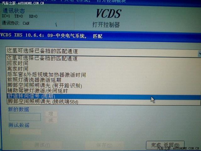 用轉(zhuǎn)向燈太麻煩,變道和小轉(zhuǎn)彎用轉(zhuǎn)向燈是不會(huì)自動(dòng)回位的,要手動(dòng)打回來,用變道燈方便,但是閃3下還沒變完道或者還沒過完彎道就不閃了,不安全,閃5下剛好.按照網(wǎng)友的指教,已修改成功.在此表示感謝!!!!! 手機(jī)拍的片片,不好意思!8.7訂的8T尊貴,8.26提的車車,呵呵,人窮啊,還住在貧民窯,只能買個(gè)買菜車開開啦![]() ![]() 上下班走路咯,還經(jīng)常出差,3個(gè)多月啦才跑3373KM,最近想空跑到5000KM以便去首保過年啦 ![]() 用5053掃描車車故障 ![]() 1500KM高速上出現(xiàn)過EPC閃,停車再起動(dòng),故障消除,再也沒出現(xiàn)過.第一二箱油都是93#,可能是第三箱油加的97#電腦不認(rèn)才出現(xiàn)EPC亮的.以后都加93就不再出現(xiàn)過EPC閃了. ![]() 進(jìn)入界面后選擇模塊 ![]() 選擇09-中央電氣系統(tǒng) ![]() 進(jìn)入舒適轉(zhuǎn)向信號(hào) ![]() 默認(rèn)為3 ![]() 改成5,保存,OK! ![]() 返回故障檢測(cè),無故障,退出.大功告成!!! ![]() 改完后,試過,修改生效!!! 聲明: 本文系搜集于網(wǎng)絡(luò),版權(quán)歸原作者及所發(fā)網(wǎng)站所有,如果本站(玩改車)侵犯了您的權(quán)利,請(qǐng)及時(shí)告知,本站會(huì)即刻處理. |