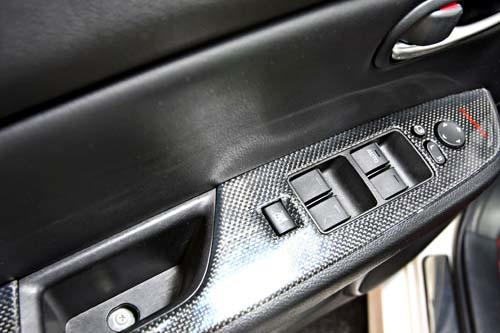 內(nèi)飾部分真和國際將原廠皮革部分改采反皮的防滑設(shè)計(jì),搭配上火紅色的換檔撥片整體視覺效果相當(dāng)良好。飾板部分也一并換裝上Auto Exe的碳纖維飾片來加以點(diǎn)綴原廠略顯單調(diào)的內(nèi)飾。 |