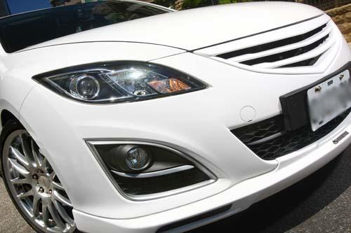 這輛純白色的Atenza Sport(Mazda 6),可說是真和國際的展示車,全車搭載上了Mazda專門的AutoExe套件及自家代理的KENSTYLE空力套件。一般來說臺(tái)灣馬六的車主其實(shí)對(duì)于動(dòng)力的渴望并不高,畢竟2.5S版本上的MZR本體就擁有170hp/23.0kgm的最大輸出,搭配上AAS電子控制五速手動(dòng)擋系統(tǒng)下,一般道路使用絕對(duì)是綽綽有余。 由于車價(jià)并不便宜,因此會(huì)購入馬六的車主都是以有著成熟經(jīng)濟(jì)能力的30歲上下男士居多,而套件的選擇也以較細(xì)膩的日制套件為首選,依舊是以保留原廠設(shè)計(jì)為主。外觀部分則是采用上KENSTYLE Atenza Sport專用空力套件,該套件保留原廠空力套件,僅以前后下巴及水箱罩的加裝來營(yíng)造更加動(dòng)感的韻律節(jié)奏,另外空力套件部分皆是依照原廠孔位固定,前下巴更還配有固定膠條以防刮傷原廠保桿,廢除原廠徽章的直條型水箱罩,更讓馬六車頭散發(fā)出猶如中世紀(jì)鐵甲武士的風(fēng)味。 另外既然是Auto Exe的總代理當(dāng)然也就大量采用Auto Exe套件啰。除了 ??全車的強(qiáng)化拉桿及仿傾桿外,為了提升運(yùn)動(dòng)性能也換上Auto Exe高低可調(diào)懸掛,內(nèi)部油封更采用40mm的小徑化設(shè)計(jì),可提供更良好的路面回饋感,另外12段衰竭力調(diào)整的功能更是相當(dāng)便利。恰到好處的車高再搭配上Rays ME 19寸鍛造鋁圈更讓這輛白色馬六有著無懈可擊的視覺效果,內(nèi)飾部分該車也換上Auto Exe火紅色的換檔撥片,搭配上自行反皮方向盤更顯尊貴感,最后動(dòng)力部分還是以基礎(chǔ)的Auto進(jìn)排氣系統(tǒng)及Superchips電腦晶片為主,雖然不如渦輪車般的暢快,但在撥動(dòng)Auto換檔撥片時(shí)依舊是相當(dāng)寫意…
