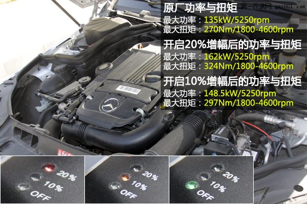 梅賽德斯奔馳傳承著鮮明的德國人精神,使得他們追求完美,渴望創(chuàng)造巔峰,所以“靜如處子,動如脫兔”的C200自然是奔馳技術(shù)結(jié)晶的產(chǎn)物。作為C-Class系列針對消費群體——年輕一族,他們對于車輛性能往往不會止步于原廠,改裝成了最好的出路。明智的改裝者均是花最小的代價獲得最佳的效果。本次測試的C200雖然不是最新款,但它卻與2011款C200有著相同的“心臟”,遺憾的是5速自動變速箱肯定會為此拖累不少性能。那么這小小的改動能為C200帶來多大的變化呢?請看下文。 從柴油機到汽油機,從L4到V12發(fā)動機,人類追求極致動力的步伐從來就沒有停止過,所以在發(fā)燒友眼中C200不是完美的。車主在改裝的前也慎重考慮過是刷ECU還是安裝外掛電腦,由于考慮到刷ECU后逆轉(zhuǎn)是件麻煩的事情,所以車主選擇了外掛電腦。 外掛行車電腦增加發(fā)動機動力的主要手段是通過調(diào)整渦輪與發(fā)動機之間的信號,從而調(diào)高渦輪的增壓值,讓發(fā)動機爆發(fā)更多的動力。 渦輪增壓器簡介 渦輪增壓器的核心部件就是渦輪和壓氣機葉輪,這兩者是通過轉(zhuǎn)軸連接在一塊的。渦輪增壓器的工作很簡單,高壓廢氣沖擊渦輪使其高速旋轉(zhuǎn),同時也就帶動了葉輪高速轉(zhuǎn)動,葉輪就能高速轉(zhuǎn)動把空氣壓入氣缸內(nèi)。渦輪的轉(zhuǎn)速非常高,現(xiàn)在車用渦輪增壓的轉(zhuǎn)速在12-20萬轉(zhuǎn)之間。 奔馳C200通過外掛行車電腦調(diào)整后能夠提高大約20%的動力,最大增幅可以達到最大功率162kW/5250rpm,最大扭矩324/1800-4600rpm。百分之二十的增幅足以讓C200改頭換面。雖然功率方面沒有超過C300,但是在扭矩方面要多出24Nm。 外掛行車電腦擁有一個好處,就是可以調(diào)整電腦的增幅,該款卡妙思外掛渦輪電腦擁有三種模式:OFF(不產(chǎn)生任何增幅作用,完全按照原廠的標準進行)、10%(調(diào)整渦輪壓力傳感器與增壓器的信號,為發(fā)動機提高將近10%的功率與扭矩)、20%。(調(diào)整渦輪壓力傳感器與增壓器的信號,為發(fā)動機提高將近20%的功率與扭矩)。 由于輪胎胎紋狀態(tài)良好,不過C200裝配的輪胎為米其林ENERGY系列的205/55R16,該款輪胎重點是舒適、靜音、節(jié)能,并不是主打性能的輪胎,在測試中多少會對動力輸出有一定的影響。 由于輪胎胎紋的狀態(tài)良好,為了能夠更好的發(fā)揮C200的性能,測試中我們關(guān)閉了ESP系統(tǒng)。不過對于C200加速成績最大的擔(dān)心并不是輪胎,而是在于2010款C200的5AT變速箱,對于動力的輸出肯定有較大的影響。 加速測試:0-100公里加速度時間8.26秒(原廠模式) 起步時能夠明顯感受到C200那種溫柔的停頓,持續(xù)將近0.2秒后G值才開始上升,最后峰值達到0.61g。當(dāng)時速超過60km/h后g值開始明顯下降,之后大約在0.35g附近持續(xù)浮動,整體加速過程發(fā)動機的動力輸出并不太穩(wěn)定,最后百公里加速時間為8.26秒。 加速測試:0-100公里加速度時間7.53秒(20%增幅模式) 在開啟20%增幅的模式下,汽車的停頓依然存在,不過由于發(fā)動機的扭矩增大了,所以停頓很快被克服,在起步不久后達到0.69g的加速度。在60km/h后整體的加速度有所下降,平均值大約在0.38g左右,不過動力輸出的穩(wěn)定性較高,直到80km/h后才開始波動。 0-60公里與0-100公里加速時間對比: 我們可以看到在0-60加速時間對比方面改裝后僅領(lǐng)先0.68秒,主要原因是因為起步時的加速G值差距較大,將近有0.8g的差距,所以0-100公里加速時間的差距主要集中在了60公里之內(nèi),后半部分的加速由于更多在于功率方面,所以差異比較小。由于該部C200并沒有經(jīng)過剎車部分的改裝,所以在這里就不做剎車測試。 試駕感受: 假如說改裝前的C200是溫柔的君子,那么改裝后的C200就是一暴君,充沛的動力隨時等待著你輕輕踩下油門踏板進行爆發(fā)。對于這種渦輪外掛電腦還是比較合適我們平時用車生活的習(xí)慣的,畢竟誰也不想花大價格去刷一次ECU。不僅安裝麻煩,而且需要調(diào)回原廠模式還需要回去改裝店。這種外掛電腦雖然增幅較刷ECU小,但是價格與實用性方面劃算很多,同時能夠在你想節(jié)能的時候節(jié)能,想撒野的時候能夠撒野 |