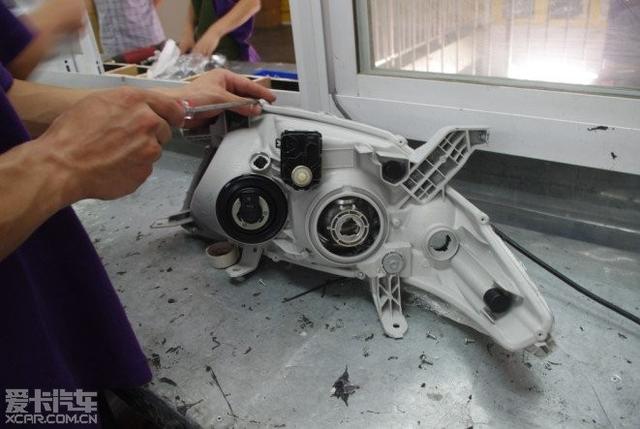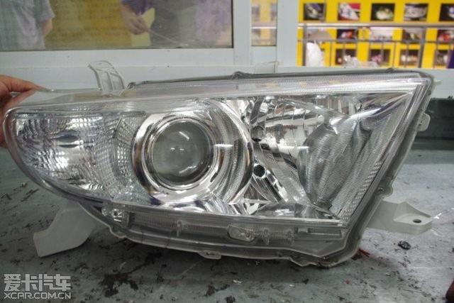 可是游玩了一天,回來的時候就出現(xiàn)了點問題。那時天已經黑了,駕車時自然得靠車燈來看路,可是我這款漢蘭達原車裝的是RX350單光透鏡和鹵素燈,說實話,亮度確實比較差,更不能像雙光透鏡那樣變光,跑夜路就是不行,所以回來的一路上常常會看不清楚夜路,感覺很是費勁,心里一直到時七上八下的,哪還有心情欣賞沿途的夜景什么的。 回來以后我就下定決心要給我的漢蘭達車燈做一個升級,把原先亮度差的鹵素燈換掉,換成亮度高的氙燈,免得以后再出現(xiàn)這種問題。透鏡也要換成雙光透鏡,能實現(xiàn)遠近光自由變換,這樣以后跑夜路就更安全方便了。 經朋友介紹,找到了一家非常專業(yè)的改燈店,預約之后就把車開了去。改燈現(xiàn)場我是一步不離,整個改燈過程我都用相機記錄了下來,畢竟是給我愛車的大燈做升級,值得紀念,而且圖片我也能和各位車友們一起分享。 氙燈我選的是飛利浦燈泡,這款燈泡壽命長,亮度好,相當不錯。透鏡用的是RX350雙光透鏡,配松下安定器,這款安定器壽命長,穩(wěn)定。好了,接下來就是我全程記錄下來的過程。這是我的漢蘭達原先的大燈,大家可以看看外觀 ![]() ![]() 開燈以后燈光昏暗,發(fā)黃。大家一眼都能看出來,亮度很差。 ![]() ![]() 這是照在墻上的燈光效果,很昏暗,我那天跑夜路回來時就是這種不理想的效果,看夜路真是有些費勁。 ![]() ![]() 改燈師傅們開始拆原先的大燈了 ![]() ![]() 拆下來的大燈,覆上膜,保護燈面。 ![]() 拆下來的另一個大燈 ![]() 拆掉上面的螺絲 ![]() 把大燈放入烤箱,使大燈均勻受熱,容易拆卸 ![]() ![]() ![]() 左邊是原車拆下來的RX350單光透鏡,右邊是要換上去的RX350雙光透鏡 ![]() ![]() ![]() 拆掉大燈的車,看著有點像是鯊魚的大嘴,下面那一排就是大白牙 ![]() ![]() 把雙光透鏡裝到燈殼上 ![]() ![]() 拆下來的另一個大燈的燈殼