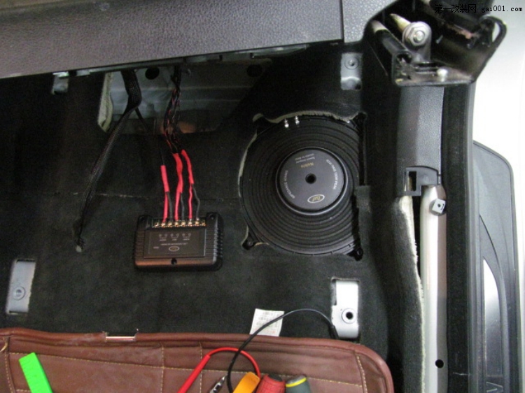 安裝完畢,進(jìn)行聲音的調(diào)試試聽!我們在原車的CD上進(jìn)行了中高音的設(shè)置,同時將座位下面的中低音進(jìn)行了相位調(diào)整,試聽童麗的“古箏與童麗的故事”,古箏是細(xì)膩跟質(zhì)感全部發(fā)揮出來,童麗甜美的聲線及歌喉頓挫感表現(xiàn)自然。中頻密度飽滿有韻味,試聽中低音,低頻有力度,且聲音上到儀表臺的上方,與中高音結(jié)合在一起,整體感覺豐富自然! 一套好的音響系統(tǒng),能演繹不同曲目的歌曲,聲音及耐聽又有韻味,而且整個聲音聽起來真實(shí)自然,這就是我們所要追求的,也是我們所想要的效果,好的音效系統(tǒng),越聽越能打動人,這就是好音樂,不要剛開始好聽,漸漸的不好聽,就是我們常說的,喇叭的平衡度!所以判斷一套器材的真實(shí)聽感,最關(guān)鍵就是耐聽!而且要真實(shí)還原演唱者本身的聲音特點(diǎn)!這就是我們改裝店的目的。