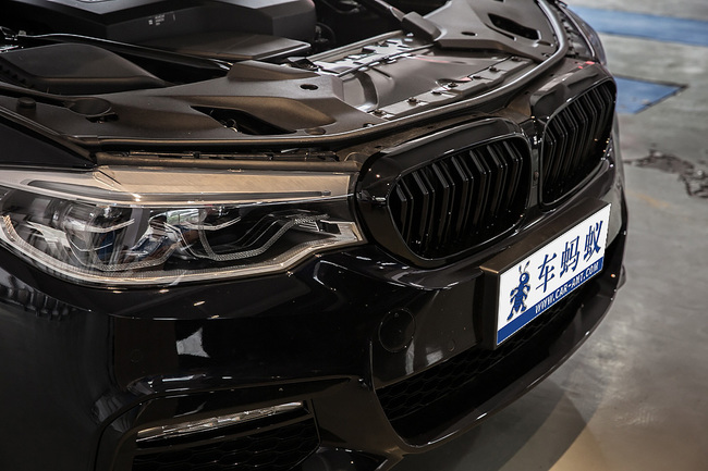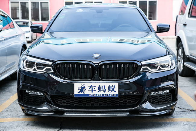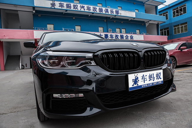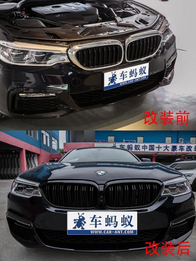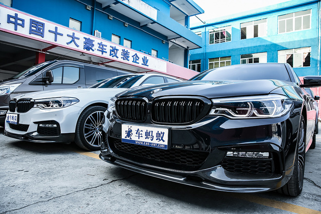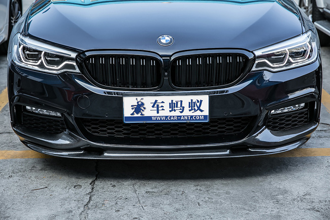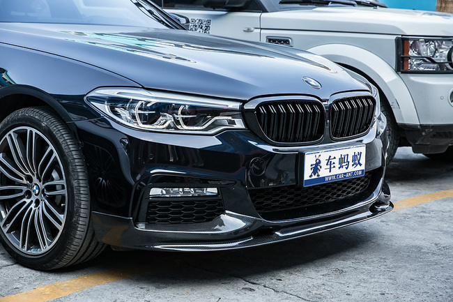 寶馬5系改裝黑色中網(wǎng),加裝碳纖維前唇和碳纖維尾翼