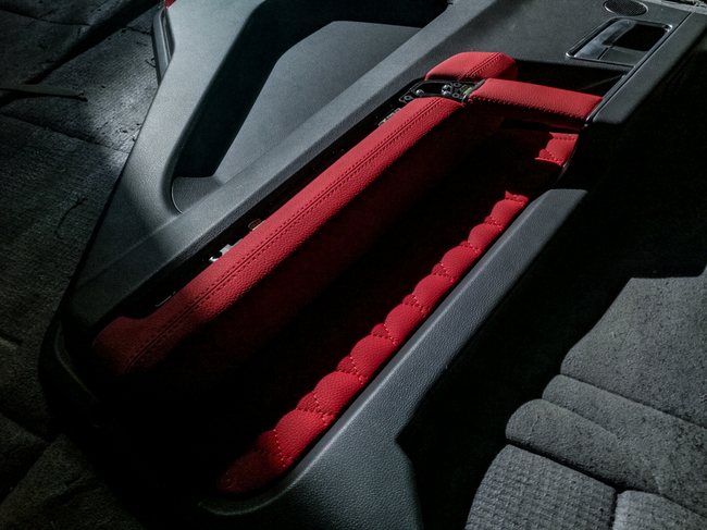 整車包裹著紅黑搭配的真皮,看起來整體的既視感比原車內(nèi)飾強(qiáng)多了,它們不僅自身具有豐富的內(nèi)涵而且它們的搭配使用也是色彩運(yùn)用中極其精彩的組合。