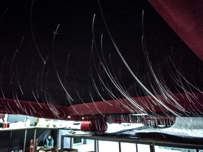 星空頂?shù)闹谱鞴に?,在專用的麂皮絨上打孔,在內(nèi)面插入進(jìn)口超導(dǎo)星空頂?shù)墓饫w。