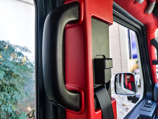 安裝門板,門扶手處包裹著真皮內(nèi)飾,特顯檔次,極具個(gè)性化。