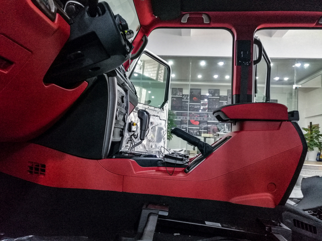 安裝效果圖,內(nèi)飾采用了紅黑色相搭的暖色系真皮,顯得比較穩(wěn)重、溫馨、多元化的層次感,外在越野,內(nèi)在慧中。