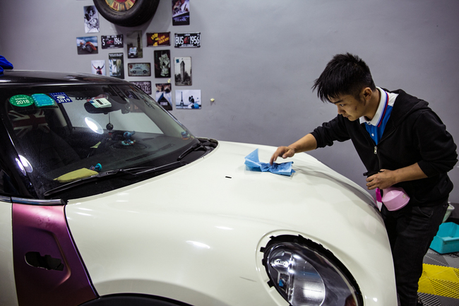 改裝前的清潔車身準(zhǔn)備,以及需要把一個死角部分的零件拆卸下來,有助于貼妝車身色膜的工作進(jìn)展