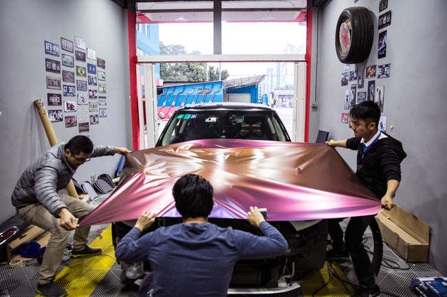 改裝的工藝比較軟細(xì),不傷原車,在專業(yè)的車間施工,專業(yè)的技師操“刀”,精湛的手藝把車身膜服服帖帖的貼在車身上。