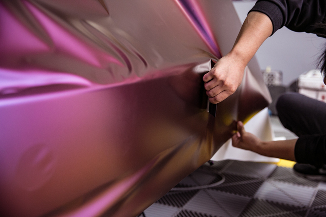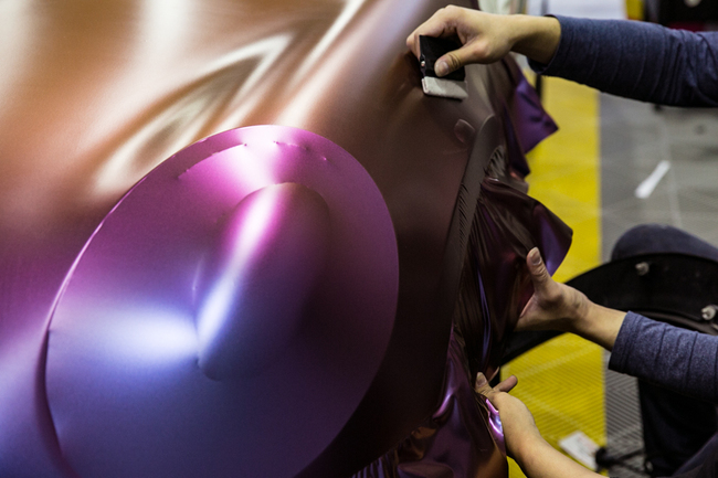 再用刮板進(jìn)行整理,使其更好地貼服車身
