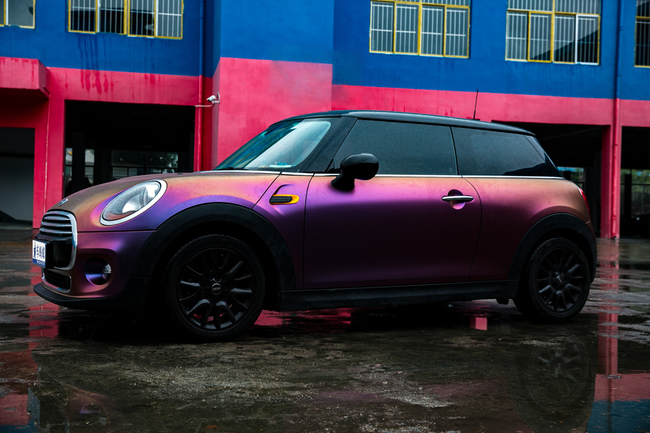 換上啞光炫彩紫莓藍(lán)的車身色膜后更加個性前衛(wèi),將整車的質(zhì)感提上更高的階段,隨心所欲享受mini帶來的駕駛樂趣。