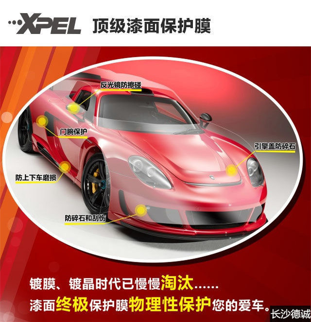 長沙德誠汽車配件有限公司于2008年引進(jìn)美國XPEL漆面保護(hù)膜,是國內(nèi)首家獨(dú)自引進(jìn)漆面保護(hù)膜這種革命性漆面保護(hù)產(chǎn)品的開創(chuàng)者。在國內(nèi)是最早接觸漆面保護(hù)膜的公司,我們已經(jīng)對(duì)XPEL實(shí)踐了六年多的歷程,并培養(yǎng)了一批專業(yè)的技術(shù)團(tuán)隊(duì),能夠給車主帶來最專業(yè)最完美的漆面保護(hù)方案。6年多內(nèi)施工近八百臺(tái)車輛。是國內(nèi)漆面保護(hù)膜行業(yè)的領(lǐng)頭羊,有著豐富的施工技術(shù)、成熟的后期維護(hù)等寶貴經(jīng)驗(yàn)。從中也接觸和研究了其它很多國內(nèi)外品牌,對(duì)比了產(chǎn)品特性如:產(chǎn)品的不發(fā)黃、不起泡、不開裂,產(chǎn)品的柔韌性、耐磨性、持久亮性等,唯獨(dú)XPEL是其中最好最值得信賴的漆面保護(hù)膜品牌。在國外XPEL是漆面保護(hù)膜行業(yè)的領(lǐng)航者,最頂尖的產(chǎn)品引領(lǐng)著整個(gè)行業(yè)的發(fā)展方向。