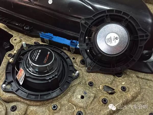 寶馬原車(chē)中低音喇叭與改裝的中低音喇叭對(duì)比