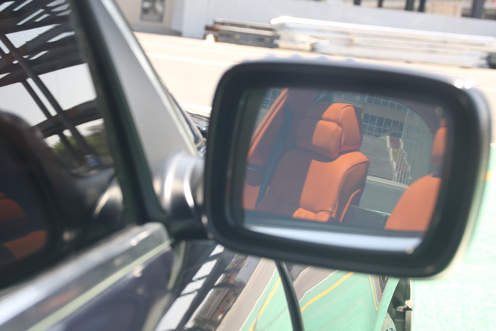 【后視鏡中的橘色座椅】