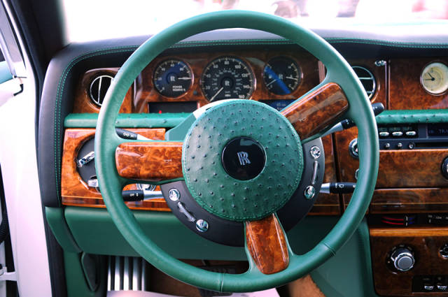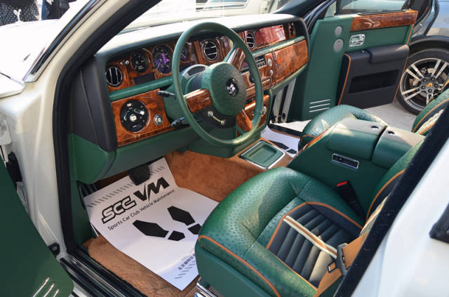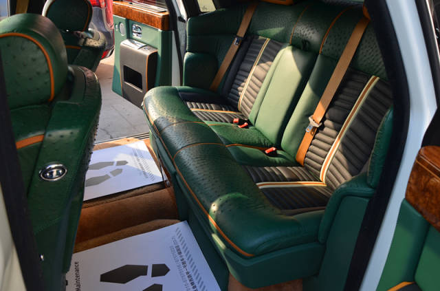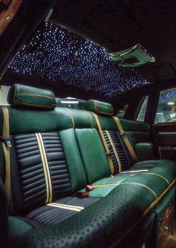 根據(jù)客戶需求私人訂制版改裝了一臺勞斯萊斯內(nèi)飾,全車耗費(fèi)近30張鴕鳥皮(只選用每張最好的紋理部分),精益求精純手工制造,同時將此臺勞斯萊斯改裝成為了浪漫星空頂,力臻完美,奢華至極。