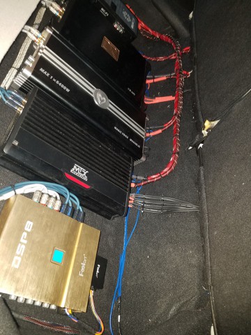芬朗DSP8。6進(jìn)8出專業(yè)數(shù)字音頻處理器。MTX4路功放主推前門DR653高音,中低音單元魔音D類功放推DR12寸超低音單元