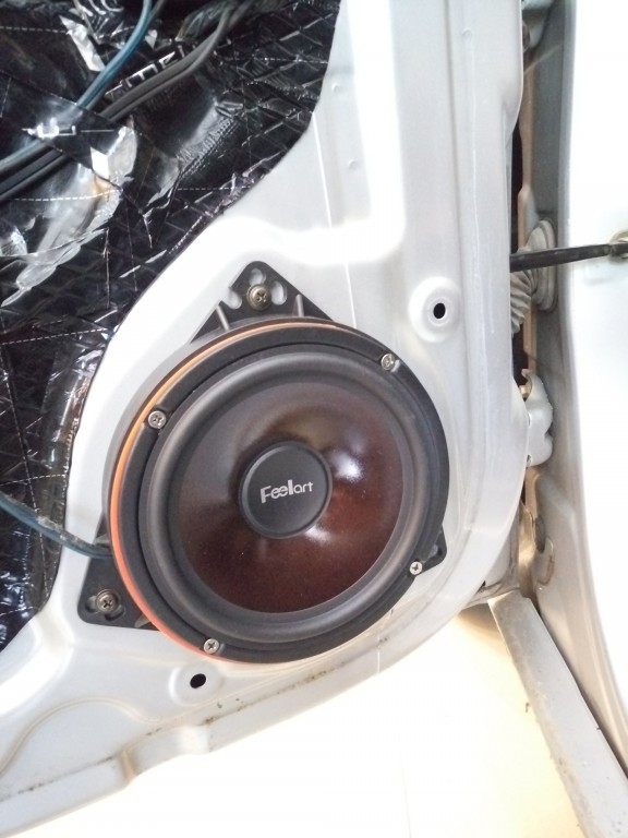 使用專用墊圈方便固定喇叭,喇叭磁鐵后方粘貼美音圈,能減少喇叭沖擊門板帶來的共振。