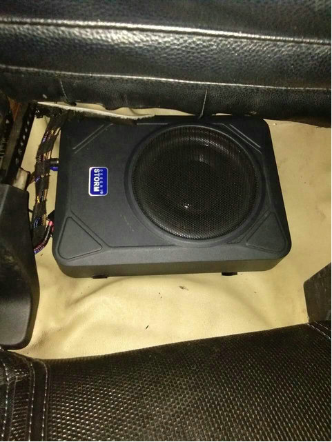斯道姆超薄低音M8安裝在副駕駛座位下面,這樣低音來(lái)的更猛烈、更直接