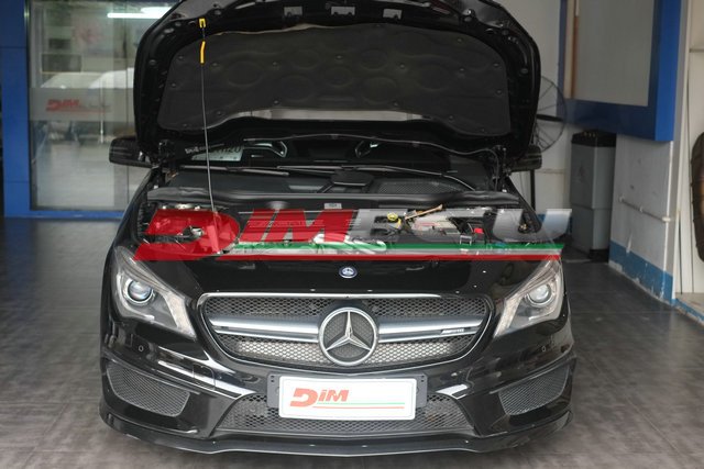 外觀方面,奔馳CLA45 AMG在普通版車型的基礎(chǔ)上進(jìn)行了更加精細(xì)化的改進(jìn),前中網(wǎng)內(nèi)改為粗細(xì)相搭配的雙輻條設(shè)計(jì),前擾流板經(jīng)過重新設(shè)計(jì),紅色制動(dòng)卡鉗與全新樣式的鋁合金輪圈相組合后極具視覺沖擊力。 CLA45與A45的動(dòng)力總成相同,搭載了一臺(tái)代號(hào)為M133的2.0T渦輪增壓發(fā)動(dòng)機(jī),采用單渦輪雙渦管增壓器結(jié)構(gòu),最大功率360馬力(265千瓦)/6000rpm,峰值扭矩450?!っ?2250-5000rpm,匹配一臺(tái)7速AMG SPEEDSHIFT DCT運(yùn)動(dòng)型雙離合變速箱。名副其實(shí)的小鋼炮、、