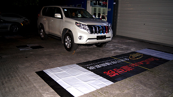 鋪上全景調(diào)試布準(zhǔn)備調(diào)試,天已經(jīng)黑了,師傅們還在奮力改裝