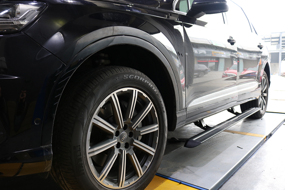 2. 奧迪Q7電動(dòng)踏板安裝后,是否會(huì)影響補(bǔ)輪胎?舉升機(jī)頂在什么地方?